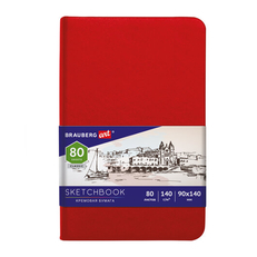 Скетчбук BRAUBERG ART CLASSIC, красный, 80 л. цвета слоновой кости, 90*140 мм, 140 г/м2, кожзам, резинка