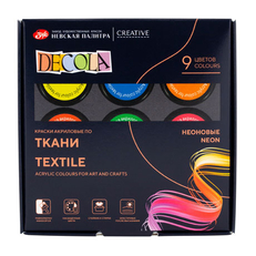 Набор акриловых красок по ткани Decola НЕОН, 9 цветов, 20 мл